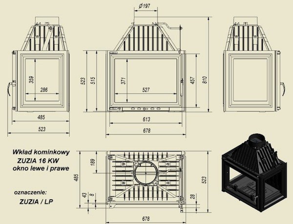 Характеристики Скло з бічним склом Країна виробник Польща Потужність (кВт) 16 кВт Паливо дерево Гарантія 10 років Діаметр димохідної труби 200 мм Вага 149 кг ККД 70% Конфігурація трибічних Тип топки повітряна Підйомні двері ні Матеріал топки чавун